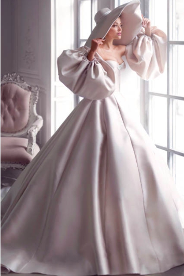 The smooth lines and gloss of the fabric of this wedding gown amplify your bridal glow, and the removable bubble sleeves make your wait stand up out. Feminine and stylish, this piece is a fabulous take on the traditional wedding gown that is sure to have heads turning.